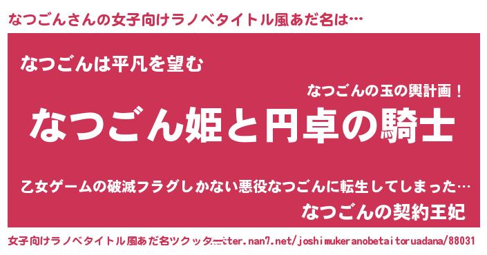| 男性向けラノベタイトル風あだ名 | 『ナツゴンアートオンライン』 |