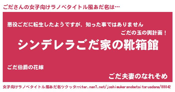 | 男性向けラノベタイトル風あだ名 | 『冴えないごだの育てかた』 |