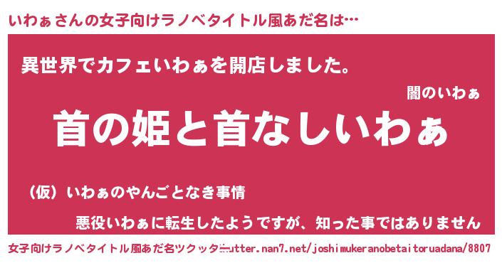 | 男性向けラノベタイトル風あだ名 | 『はたらくいわぁさま!』『いわぁの憂鬱』 |
