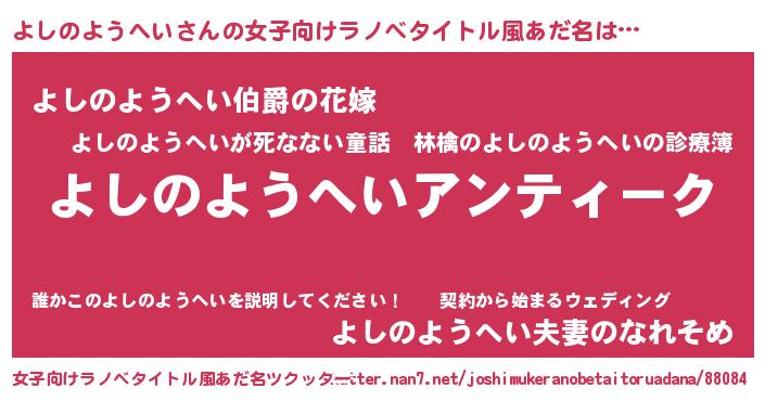 | 意味不明あだ名 | 『自称よしのようへい』 |