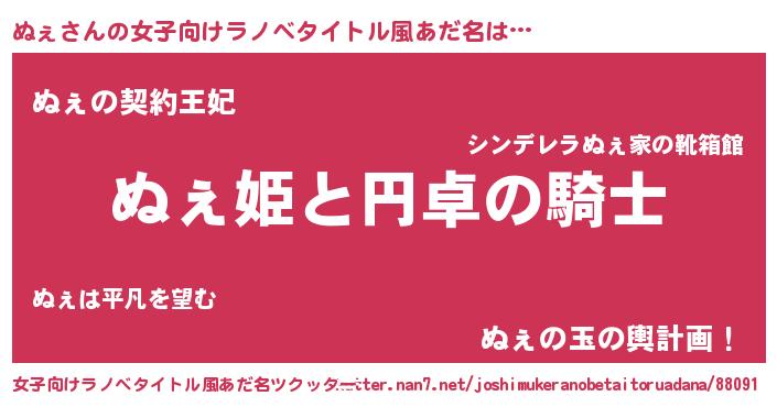 | 胡散臭い通販商品みたいなあだ名 | 『モテモテ間違いなしブレスレット…その名も「ぬぇ」』 |