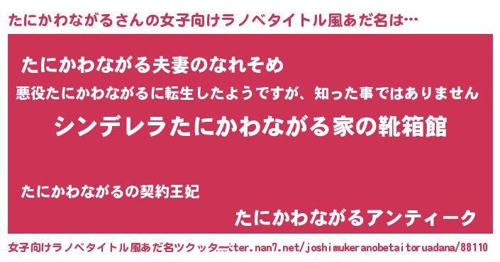 | 胡散臭い通販商品みたいなあだ名 | 『100人中100人が認めたイリジウム磁石…その名も「たにかわながる」』 |