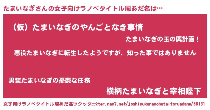 | 男性向けラノベタイトル風あだ名 | 『この素晴らしい世界にたまいなぎを!』 |