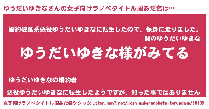 | ヒーロー風カッコイイあだ名 | 『炎刃騎士ユウ』『仮面ユウダー』 |