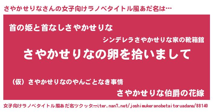 | ポケモン風あだ名 | 『ヒサヤカセリナ』『サヤゴンZ』 |