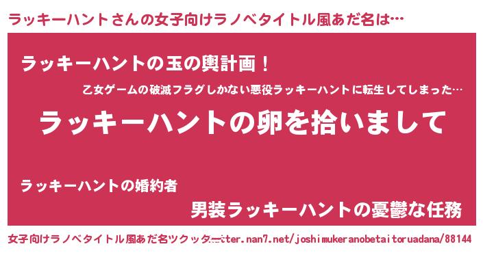 | 男性向けラノベタイトル風あだ名 | 『ダンジョンにラッキーハントを求めるのは間違っているだろうか』 |