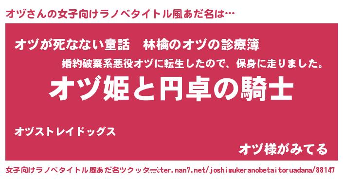 | 男性向けラノベタイトル風あだ名 | 『オヅアートオンライン』 |