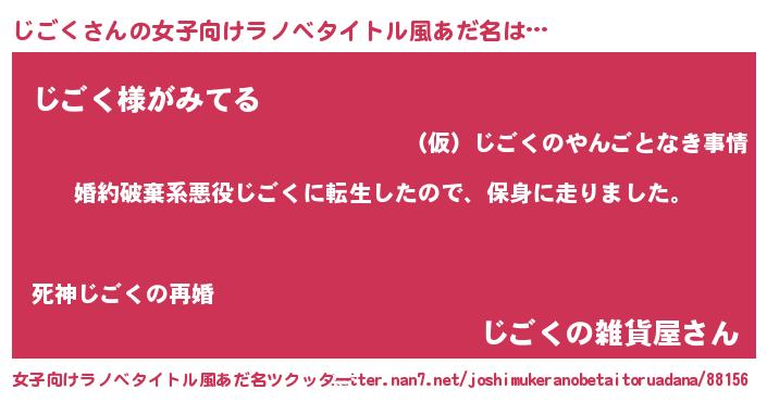 | 胡散臭い通販商品みたいなあだ名 | 『信頼と実績のネックレス…その名も「じごく」』 |
