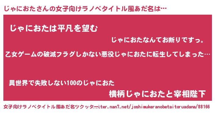 | 意味不明あだ名 | 『住所不定無職じゃにおた(9歳)』 |