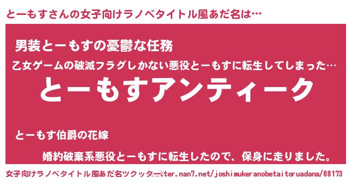 | 胡散臭い通販商品みたいなあだ名 | 『テレビで話題のアガリクス…その名も「とーもす」』 |