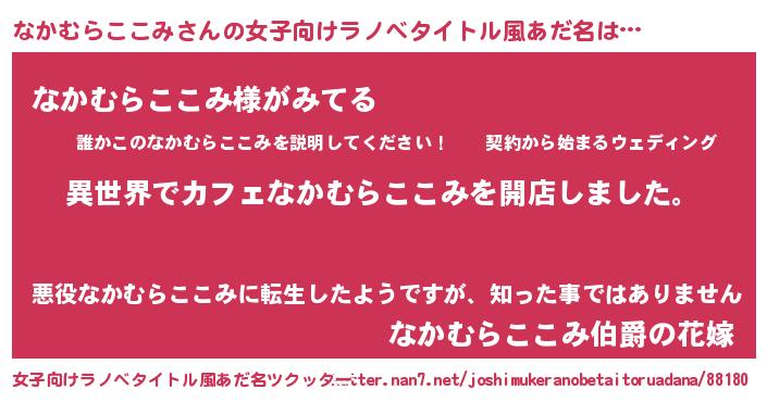 | ヘコむあだ名 | 『なかむらここみ(遠い目)』『なかっちょ』 |