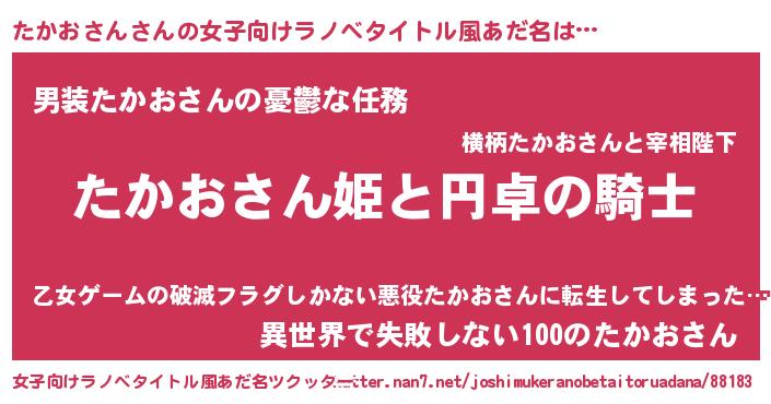 | 男性向けラノベタイトル風あだ名 | 『たかおさんの憂鬱』 |