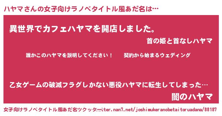 | ファンタジー風あだ名 | 『ハヤフェル』『ハヤディッシュ』 |