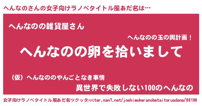 | 男性向けラノベタイトル風あだ名 | 『へんなのの嫁は女の子じゃないと思った?』 |