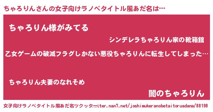 | 男性向けラノベタイトル風あだ名 | 『魔弾の王とちゃろりん』 |