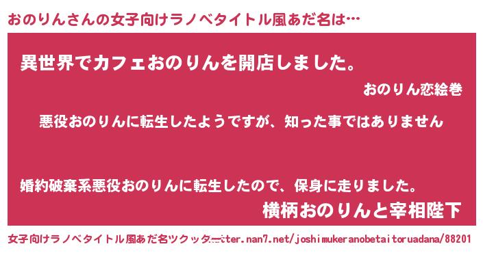 | 男性向けラノベタイトル風あだ名 | 『この素晴らしい世界におのりんを!』 |
