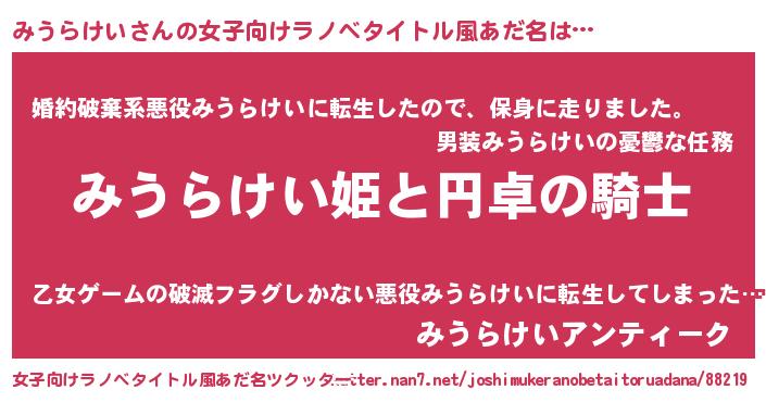 | 男性向けラノベタイトル風あだ名 | 『みうらけいの憂鬱』 |