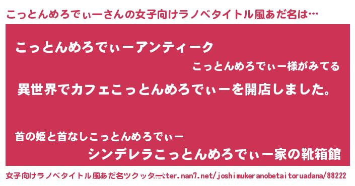 | 胡散臭い通販商品みたいなあだ名 | 『前代未聞の健康食品…その名も「こっとんめろでぃー」』 |