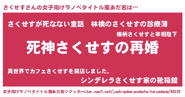 | 男性向けラノベタイトル風あだ名 | 『ノーゲーム・ノーサクセス』 |