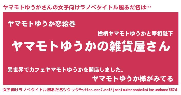 | 男性向けラノベタイトル風あだ名 | 『やはりヤマモトゆうかの青春ラブコメはまちがっている 』 |