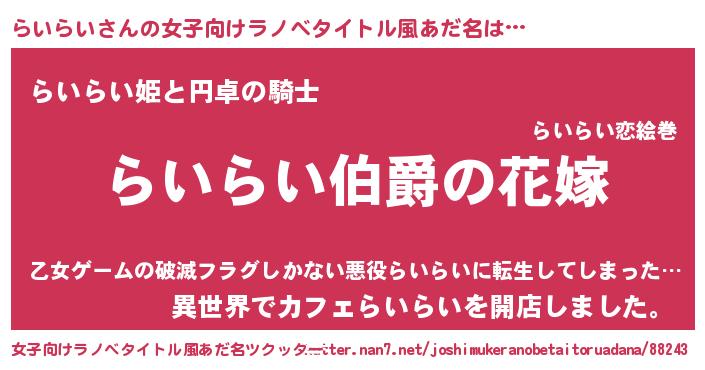 | 男性向けラノベタイトル風あだ名 | 『やはりらいらいの青春ラブコメはまちがっている 』 |