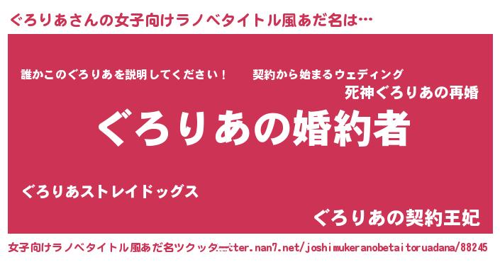 | 胡散臭い通販商品みたいなあだ名 | 『運命の人と巡り会える高級そうな壺…その名も「ぐろりあ」』 |