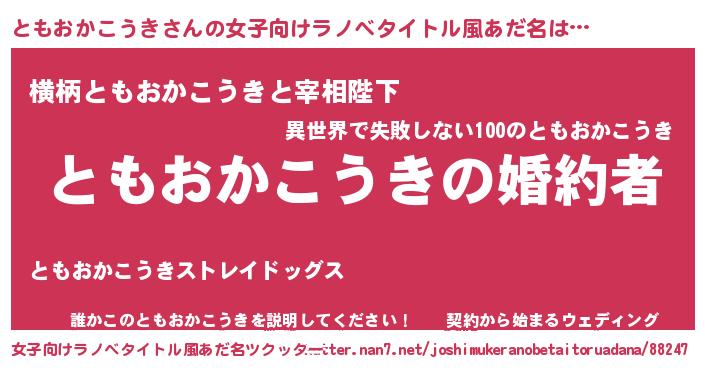 | 胡散臭い通販商品みたいなあだ名 | 『運命の人と巡り会える高級そうな絵画…その名も「ともおかこうき」』 |