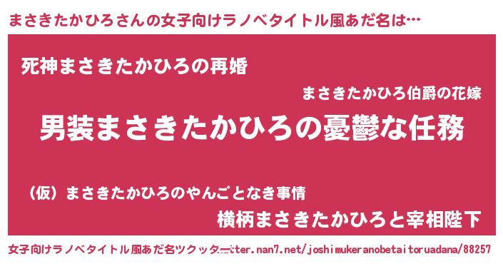 | 男性向けラノベタイトル風あだ名 | 『冴えないまさきたかひろの育てかた』 |