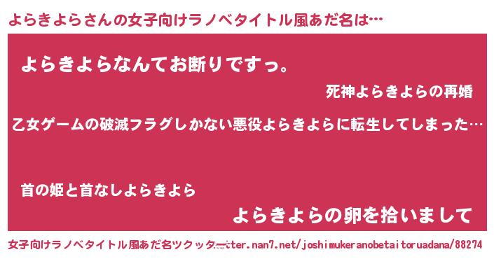 | 胡散臭い通販商品みたいなあだ名 | 『世界中を虜にした世界で10本だけ現存している希少なブランデー…その名も「よらきよら」』 |