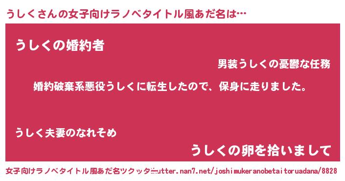 | 男性向けラノベタイトル風あだ名 | 『ウシクスレイヤー』 |
