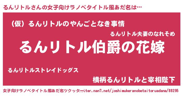 | 意味不明あだ名 | 『るんリトルフォーエバー』 |
