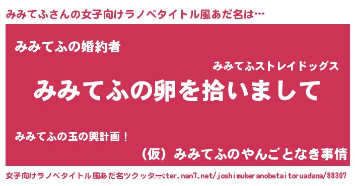 | 男性向けラノベタイトル風あだ名 | 『ダンジョンにみみてふを求めるのは間違っているだろうか』 |