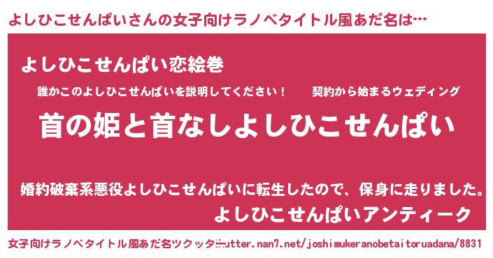 | 男性向けラノベタイトル風あだ名 | 『はたらくよしひこせんぱいさま!』 |