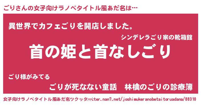 | 男性向けラノベタイトル風あだ名 | 『はたらくごりさま!』『魔弾の王とごり』 |