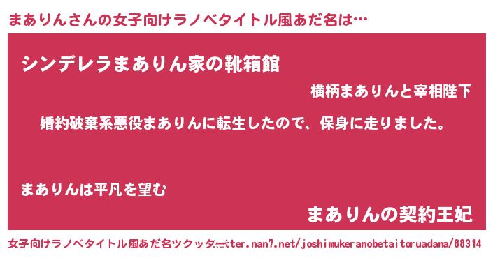 | 男性向けラノベタイトル風あだ名 | 『転生したらまありんだった件』 |