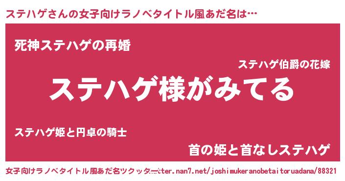 | 男性向けラノベタイトル風あだ名 | 『ステハゲの嫁は女の子じゃないと思った?』 |