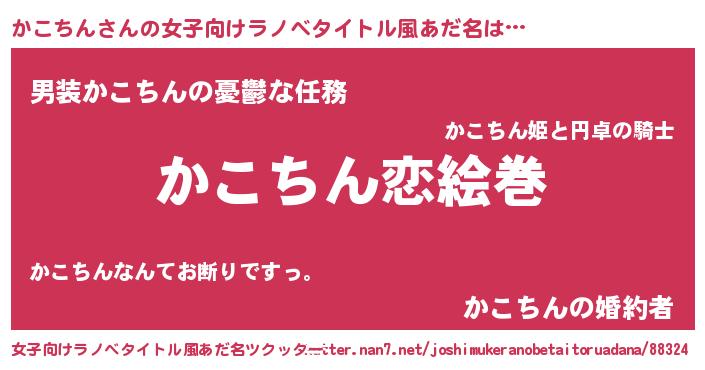 | 男性向けラノベタイトル風あだ名 | 『ノーゲーム・ノーカコチン』 |
