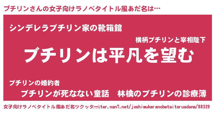 | 胡散臭い通販商品みたいなあだ名 | 『信頼と実績のサプリメント…その名も「ブチリン」』 |