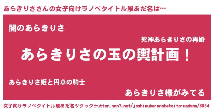 | 肩書あだ名 | 『あらきりさ大尉』『あらきりさ総統』 |