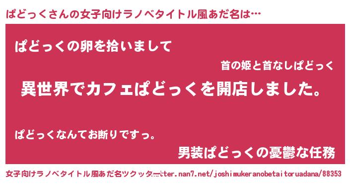 ポケモン風あだ名 | 『ゼニパド』『ヒパドック』 |