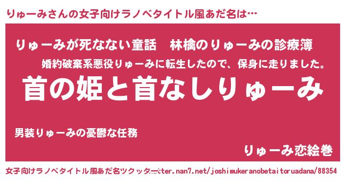 | 男性向けラノベタイトル風あだ名 | 『はたらくりゅーみさま!』 |