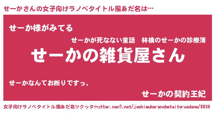 | 胡散臭い通販商品みたいなあだ名 | 『幸せが訪れる高級そうな壺…その名も「せーか」』 |