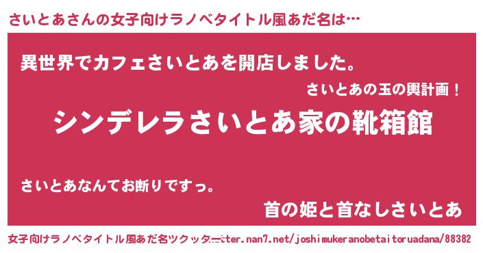 | 胡散臭い通販商品みたいなあだ名 | 『絶対に幸福をもたらす水素水…その名も「さいとあ」』 |
