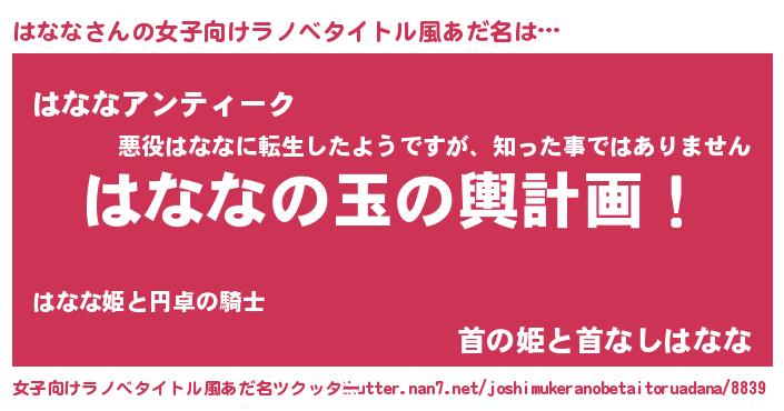 | 胡散臭い通販商品みたいなあだ名 | 『芸能人もオススメする高麗人参…その名も「はなな」』 |