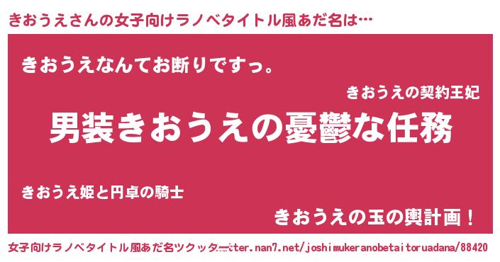 | 男性向けラノベタイトル風あだ名 | 『うちのきおうえが世界を掌握している!』 |