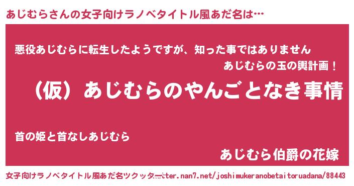 | ファンタジー風あだ名 | 『アジフェル』『ヴァルアジーナ』 |