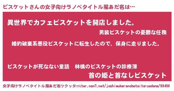 | 男性向けラノベタイトル風あだ名 | 『ビスケットスレイヤー』 |