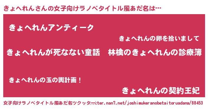 | 男性向けラノベタイトル風あだ名 | 『魔弾の王ときょへれん』 |