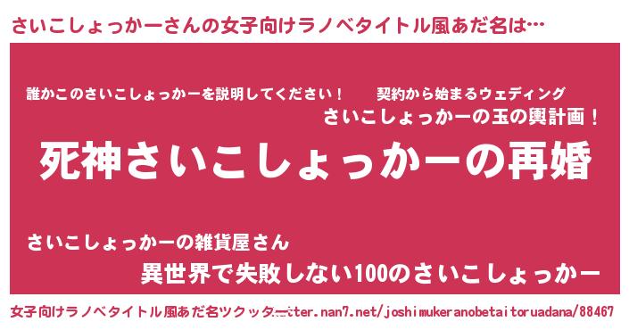 | 男性向けラノベタイトル風あだ名 | 『ノーゲーム・ノーサイコショッカー』 |
