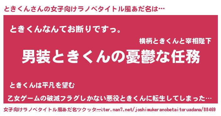 | 男性向けラノベタイトル風あだ名 | 『うちのときくんが世界を掌握している!』 |